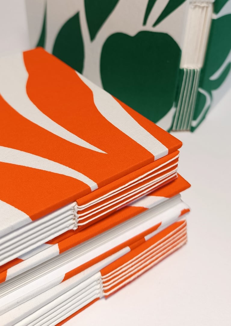 À côté de ces modèles singuliers, je réalise aussi des carnets aux couvertures plus classiques, en tissus 100 % coton, papiers japonais, simili-cuirs ou autres matériaux. Ils offrent une alternative simple et élégante, tout en conservant la qualité artisanale du fait-main.